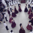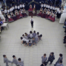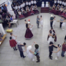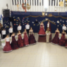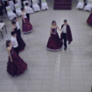 A fényűző palotává varázsolt aulában a hercegi pár bevonulása után ünnepélyes tartású, 19. századi nemesi táncot, palotást adtak elő a 8.a osztályosok.