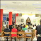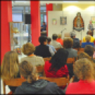 A szépszámú érdeklődő jelenlétében Kerényi Kata (koboz), Konkoly Borbála (ének) és Zsabokorszky Ferenc (hegedű) felállású együttes muzsikája után Farkas János igazgató méltatta a Magyarok Nagyasszonya jelentőségét, majd Grátz Antal ismertetőjét követően a zenészekkel közösen énekeltek a résztvevők.