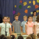 A kiskórus tagjai az iskolai életről daloltak. A 4.a osztályosok vidám műsort adtak elő; a gyerekek arcjátéka, gesztusai is arról árulkodtak, hogy nagyon jó ebben az iskolában gyereknek lenni. A szünidei élmények felidézése mellett apró életképeket láthattunk a magyar- és a matematikaórákon előforduló humoros jelenetekből, a szünetekben a fiúk és a lányok csúfolódásaiból.
