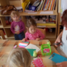 A gyerekek tojásfát készítettek, papírtojásokat díszítettek. Szüleikkel együtt tojást is festettek saját ízlésük szerint. Elmentek nyuszit nézni, simogatni. Füvet gyűjtöttek a leendő nyuszifészekbe. Kedden aztán elérkezett a várva várt nap, amikor elkészíthették a fészket, amibe aztán a nyuszi sok-sok ajándékot tojt. Homokozójátékot, buborékfújót, mini golfot közös ajándékként, Kinder tojást nyuszis tartóban pedig egyéni ajándékként. A buborékfújót mindjárt ki is próbálták.