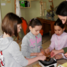 Molnár Éva tojásfestő avatott útmutatásai nyomán elsősorban a felmelegített viasz és gica-pálca segítségével segítségével készültek a festő lében is megfürdetett színes hímesek.